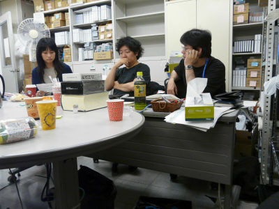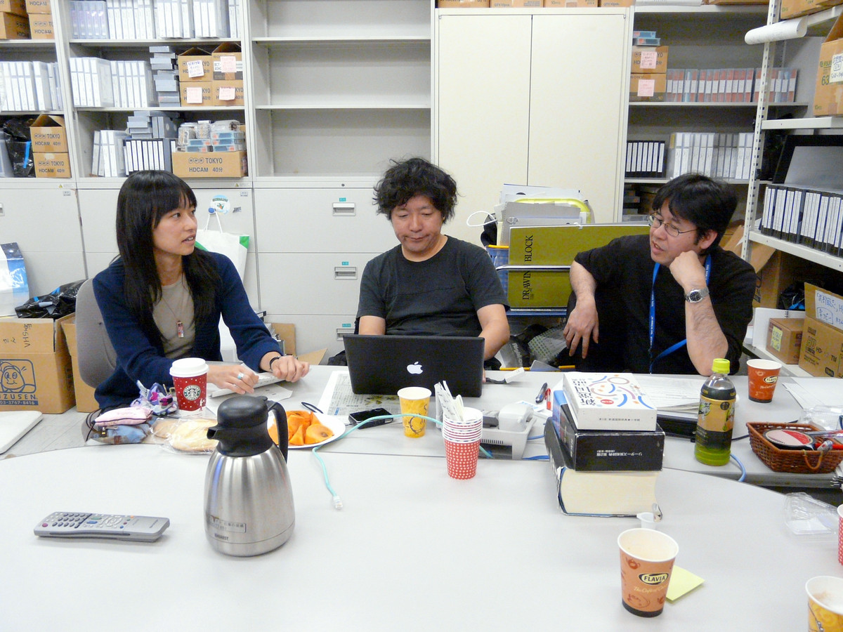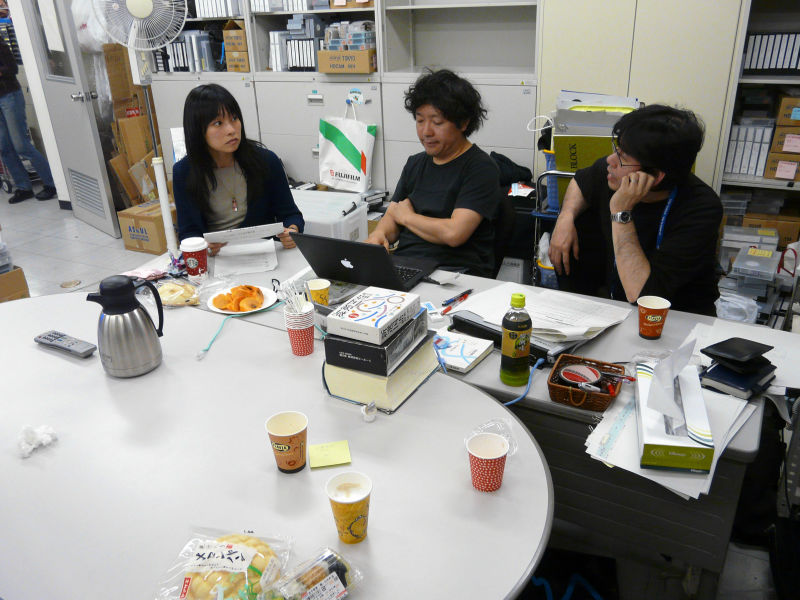 茂木氏と住吉アナ、そしてプロデューサーの3名で打ち合わせ中の様子