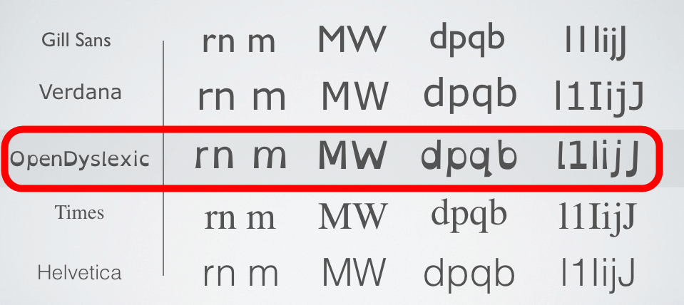 研究対象となったのはディスレクシア向けに設計された「OpenDyslexic」というフォントです。OpenDyslexicは文字の下部に「重み」があるのように見えるのが特長で、文字の方向を認識しやすくなることでディスレクシアでも読みやすくなるとされています。