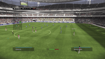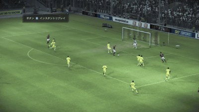 もっとも遠景になる「ブロードキャスト」。選手一人一人の姿は小さくなりますが、全体を見渡せるようになります。このほか、シングルプレイヤーではもっとも選手の視点に近い「プロ」があります。
