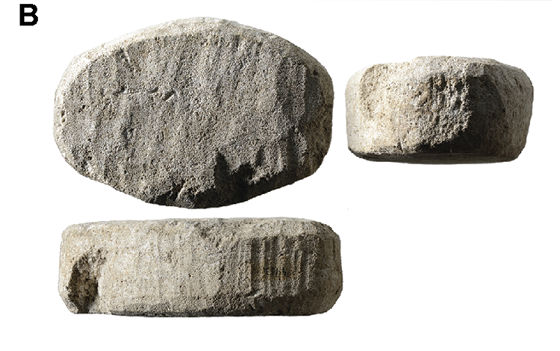 以下が、実際にクリスト氏らが研究した石灰岩の遺物です。フランス北東部の採石場で採掘された石灰岩を用いたもので、大きさは212mm×145mm×71mm、重さは3.38kgです。