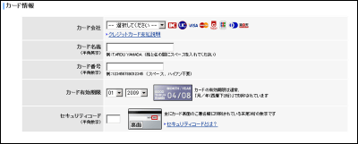 クレジットカード会員の場合はこんな感じ。VISA・MASTER・JCB・楽天KC・DC・UC・NICOS・DINERSが利用可能。