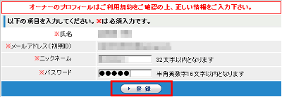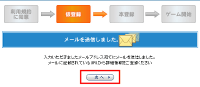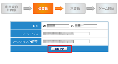 仮登録のため。姓名とメールアドレスを入力して登録申請を行います。