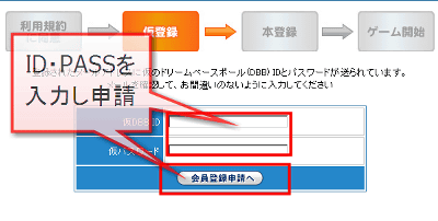 先ほどのメールに記載されていた仮IDと仮パスワードを入力。