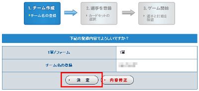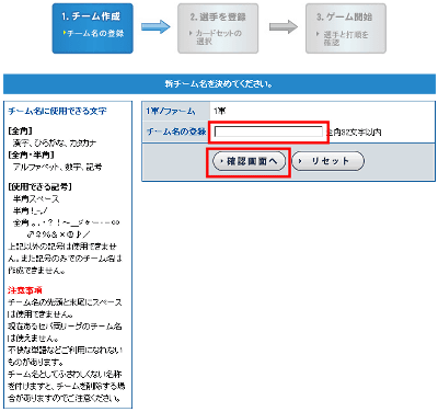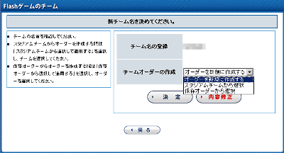 まずはミニゲーム用のチームを登録。すでに作ってあるチームオーダーをそのまま使うことも可能です。
