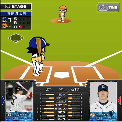「THE CARD BATTLE」は野球カードバトル。攻守ともに作戦を1つ選んで、その相性で結果が決まります。