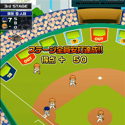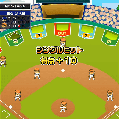 ステージは野球盤のようになっており、センター方向へのいい当たりがスポッとアウトの穴に入ってしまうことも。