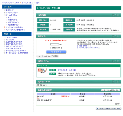 オークションへの出品は無料で行えます。ただし、入札の際はドリームクレジット(DC)が必要となってくるので注意が必要です。
