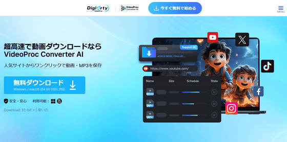 YouTubeやニコニコ動画、Huluといった1000を超える人気の動画配信サイトから動画をダウンロードできるAIツールが「VideoProc Converter AI」です。動画だけでなくライブ配信もダウンロード可能で、好みの動画を音声ファイルに変換して保存したり、低画質な動画を4K解像度に向上させたりすることもできます。そんなVideoProc Converter AIがGIGAZINEとのコラボキャンペーンで特別価格で提供されているので、実際に使ってみました。