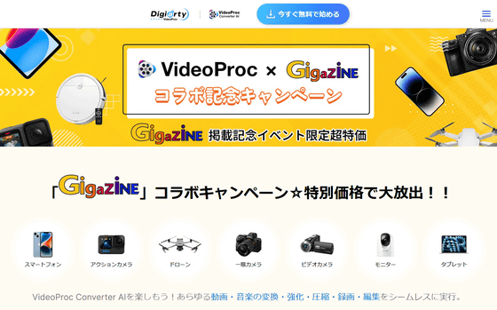 【公式】VideoProc Converter AIとGigazineのコラボ記念~特価を読者様にご提供