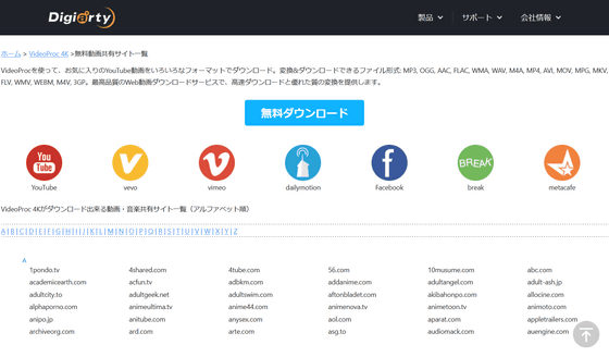 VideoProでサポートされているオンライン動画サイト