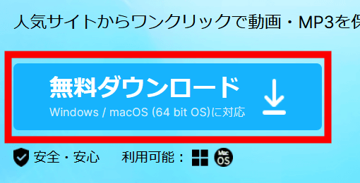 今回は最もベーシックな使い方である、動画のダウンロードを行ってみます。「ダウンロード」をクリック。