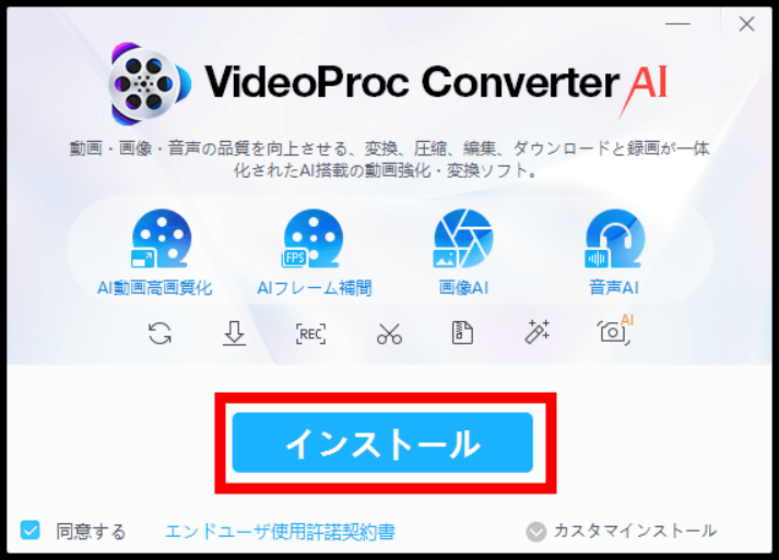 ◆1:VideoProc Converter AIのインストール手順