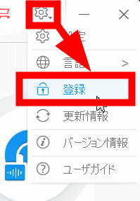 有料版を購入するとライセンスが発行されるので、「VideoProc Converter AI」の右上にある歯車アイコンをクリックして「登録」をクリック。
