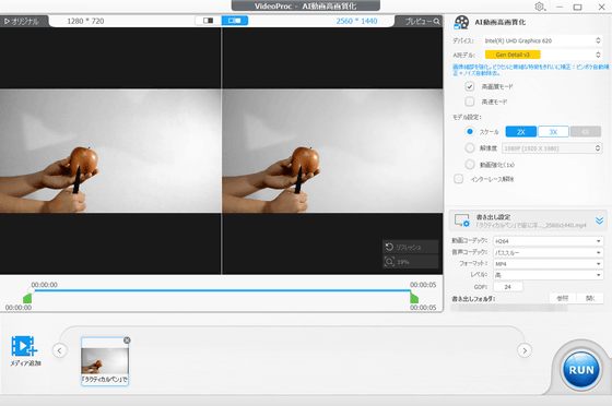 各種設定が完了したら「RUN」をクリック。高画質化が始まります。