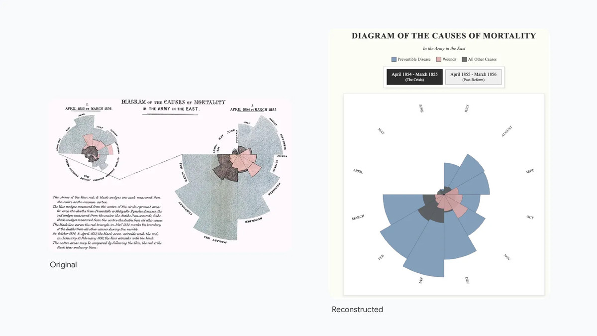 フローレンス・ナイチンゲール作図のポーラー・エリア・チャートもこの通り。