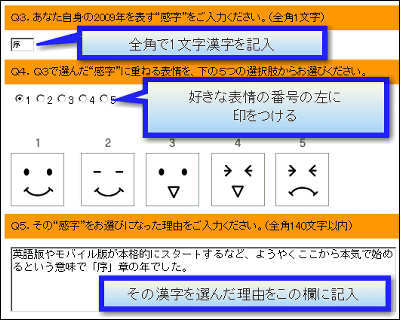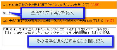 まず、2009年の世の中全体を表す漢字を一文字記入。理由も記入しましょう。