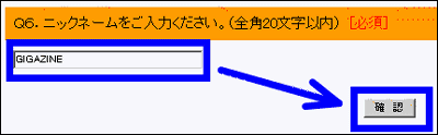 最後に、ニックネームを記入して「確認」をクリック。