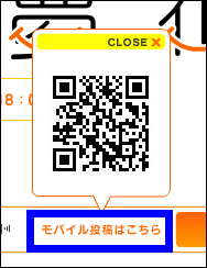 携帯電話からの投稿は、下の方に表示されている「モバイル投稿はこちら」をクリックするとQRコードが表示されます。