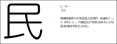 民主党の「民」。他にも安くて品質のよいプライベートブランド商品が充実した「庶民」の年とも言えます。