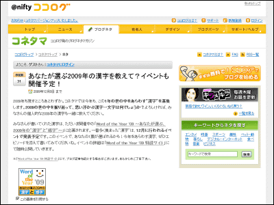 2009年にベストマッチする「漢字」と「感字」を決めるニフティの「Word of the Year ‘09」を覗いてみた