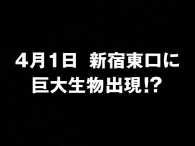 再び「4月1日 新宿東口に巨大生物出現!?」で終了。4月1日に新宿東口に行くと巨大生物に何かされそうなので、行かない方がよいと思われますが、台風の日でも必ず見に行く人がいるため、被害は避けられないものと予想されています。