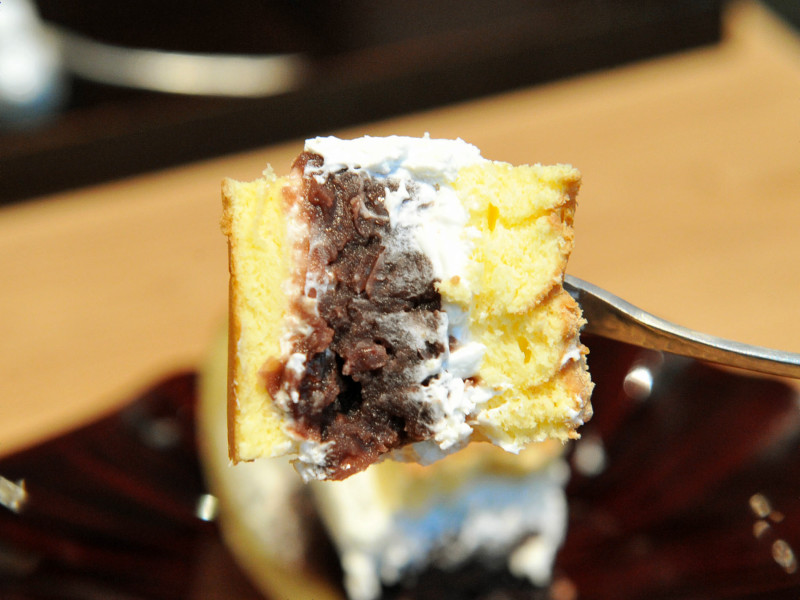 じっくりと味わってみました。見た目通りにフワフワとした食感の中、あずきの上品な甘さと味の深みに思わず舌鼓を打ってしまいます。何というか豆の味にごまかしの無いリアリティがあり、じんわりとした甘みは、普段甘い物が苦手な人でも楽しめそうです。また、北海道産だという生クリームは重たさがほぼ皆無なので、生クリーム嫌いの人でも試してみる価値があります。