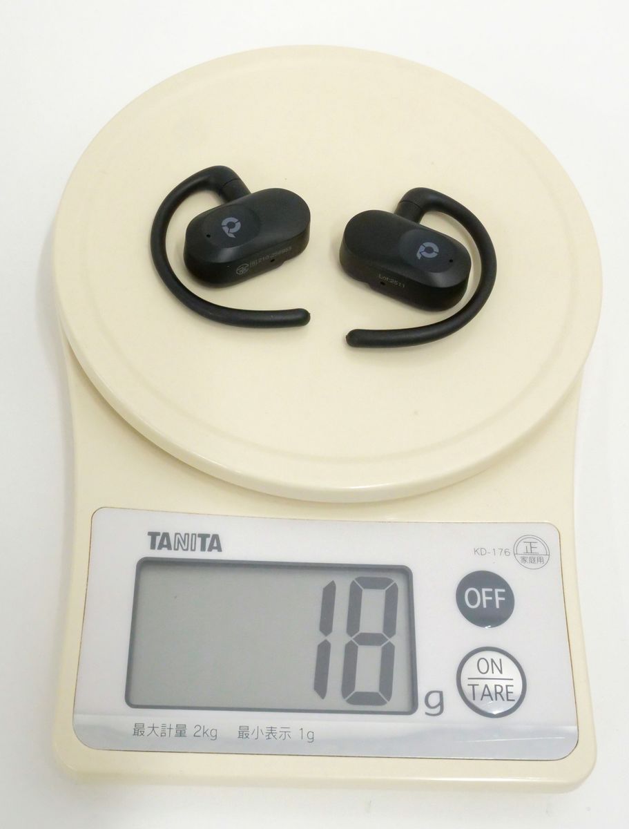 イヤホンの重量は実測で両耳合わせて18g。