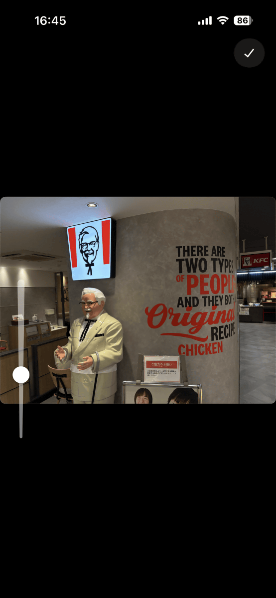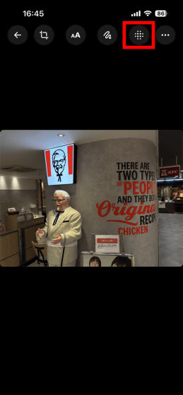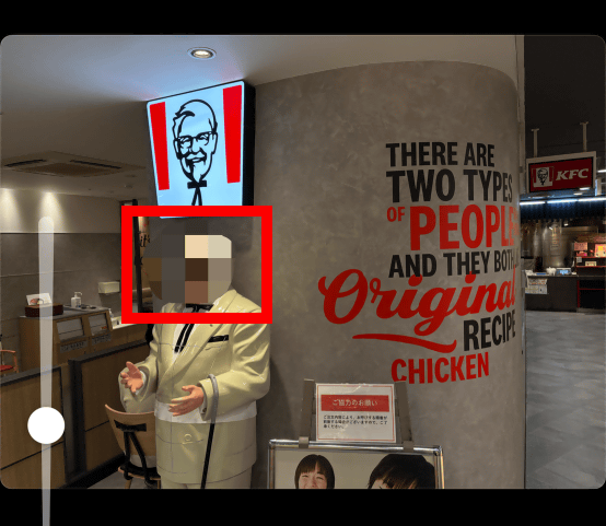 カーネルおじさんの顔部分を指でなぞるとモザイクが付与されました。