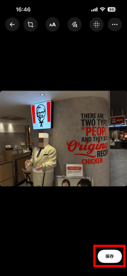 モザイク処理が完了したら画面右下の「保存」をタップ。