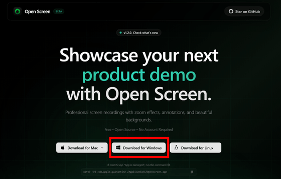 デスクトップ上で録画してカーソル部分にズームインする説明動画を簡単に作れる無料ツール「Open Screen」、Windows・Mac・Linuxに対応
