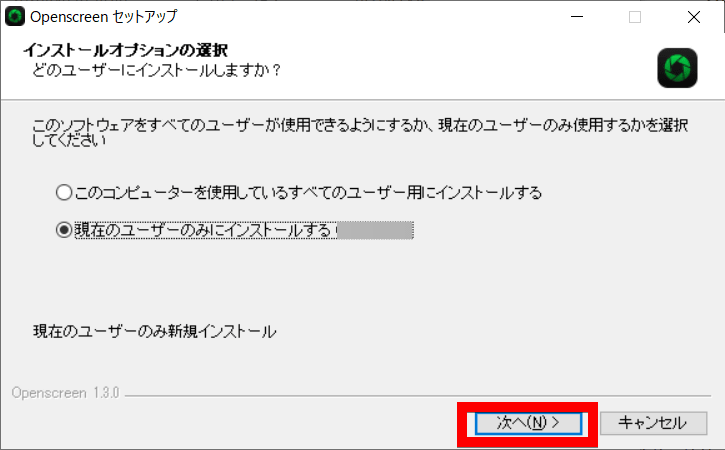 インストーラーを起動。「次へ」をクリックします。