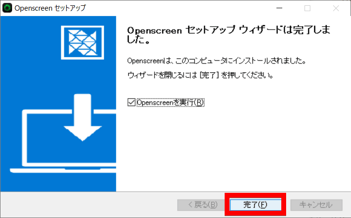 インストールが終わったら「完了」をクリックします。