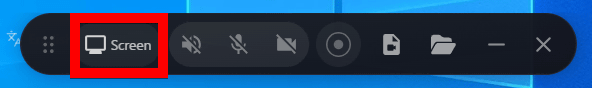 Open Screenはオーバーレイツールバーとしてデスクトップ上に表示されます。「Screen」をクリック。