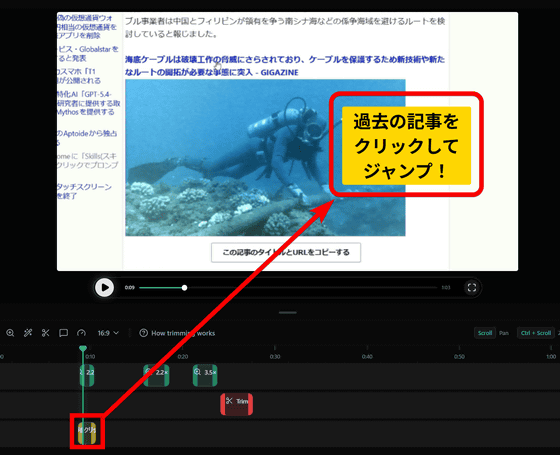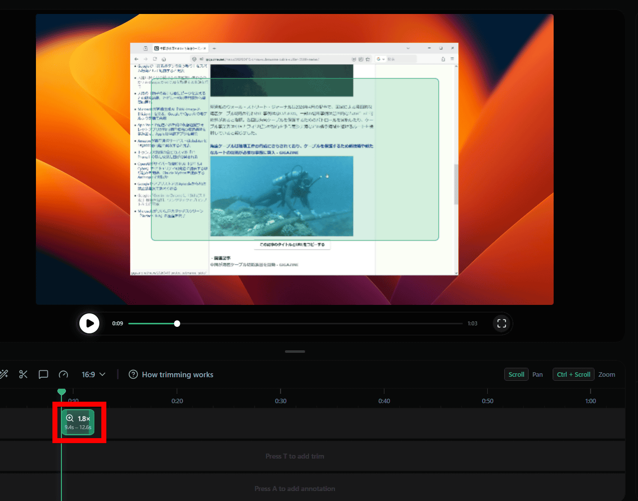 そして、実際に収録して編集し、書き出した動画が以下。カーソル部分をズームインするだけでスマホなどの小さい画面でも理解しやすくできるので、Open Screenは簡単な解説動画をサクッと作成するのにぴったりのツールといえます。