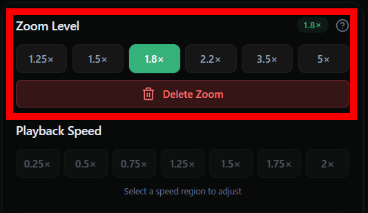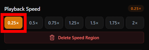 再生速度は、画面右の編集メニューにある「Playback Speed」で変更できます。