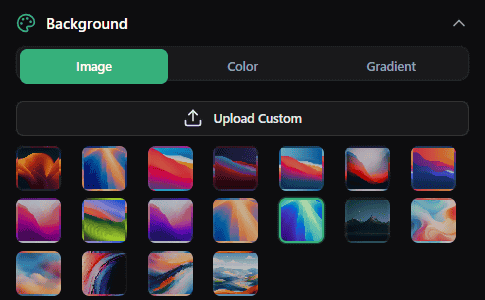 「Background」は、収録したウィンドウ外にある余白部分を埋めるイメージや色を選択できます。