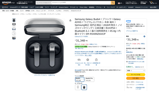 Samsung Galaxy Buds4は公式ストアでは3万1350円での販売。Amazonでは3万1348円での取り扱いがありました。カラーはホワイトとブラックの2色です。