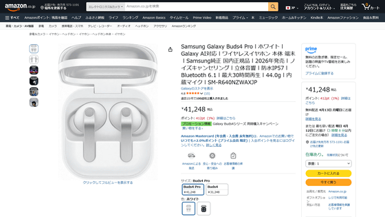 Samsung Galaxy Buds4 Proは公式ストアでは4万1250円での販売。Amazonでは4万1248円での取り扱いがありました。なお、カラーは基本がホワイトとブラックの2色。公式ストアでは限定カラーのピンクゴールドも選択可能です。