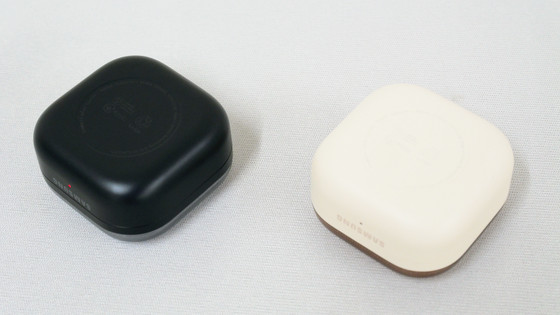 フタを開けるとこんな感じ。イヤホンの本体色とケースの色はおそろい。ケース前面の「SAMSUNG」ロゴの下にバッテリーインジケーターランプがあります。