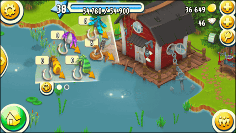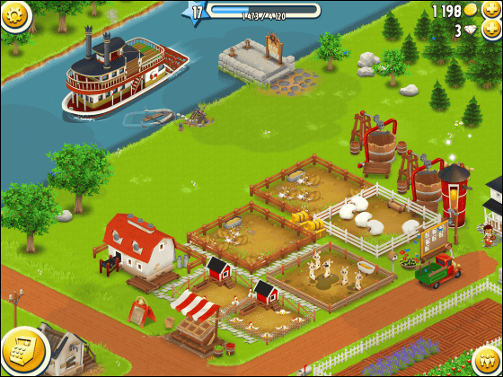 ヘイ・デイはアクション要素がほとんどなく、ポチポチと農場を経営しながら、飼育している動物を眺めたり、農場内の施設配置を考えたりしながら、まったりと遊ぶゲームです。典型的な箱庭ゲームに見えがちですが、「魚釣り」といったミニゲーム要素もあり、レベルを上げると農場と共に楽しみがドンドン大きくなります。また、農作物や加工品が完成するまで待機する時間が発生するので、寝る前にポチポチして仕掛けておけば、朝起きる頃にはうまくできあがっているため、夜更かしして寝不足になる心配もありません。