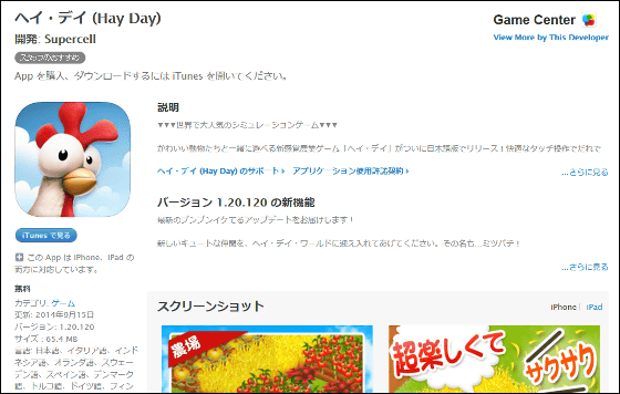 iTunes の App Store で配信中の iPhone、iPod touch、iPad 用 ヘイ・デイ (Hay Day)