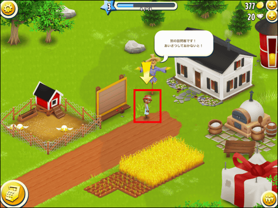 ヘイ・デイでは他プレイヤーの農場に遊びに行くことも可能。他プレイヤーの農場に遊びに行くには、画面右下の人が3人並んでいるアイコンをタップ。