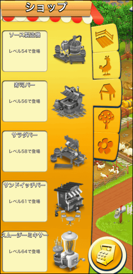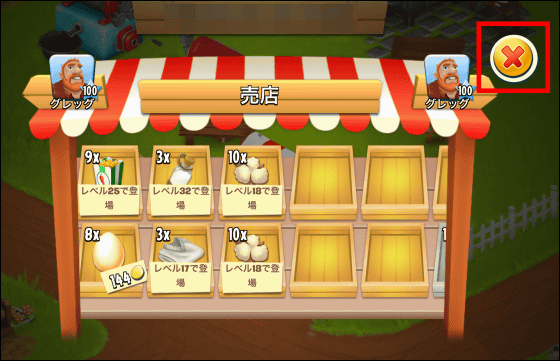 レベル7になると農場にある売店で農作物や加工品などを売却できるようになります。売店をタップして、商品を実際に売ってみることに。