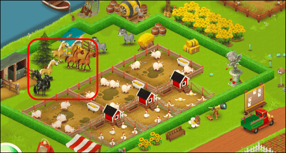 こちらのユーザーは家畜の数が多く、ペットの馬まで飼育しています。馬は走り回って農場をにぎやかにしてくれるわけではなく、エサをあげると経験値をゲット可能とのこと。うらやましい限りです……。