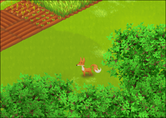 農場経営に精を出していると、どこからともなくキツネが遊びにきてくれました。キツネが来たからといって特別なことは起こりませんが、農場をジッと見つめるその姿にホッコリします。
