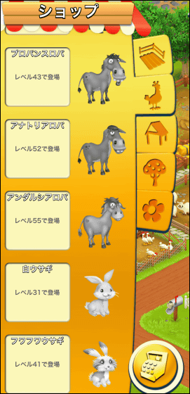 プレイでは到達できませんでしたが、レベルを上げるとロバやウサギ……