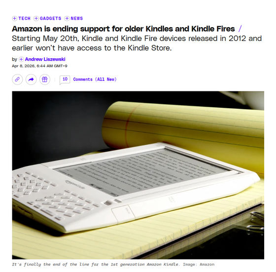 Amazonの電子書籍リーダーであるKindleと、タブレットのKindle Fireの一部モデルのサポートが終了することが明らかになりました。