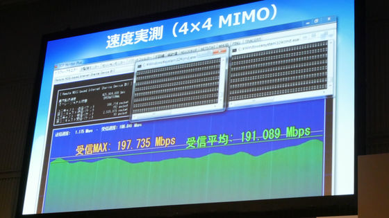 ヤ倍速(4×4MIMO)の速度実測では受信時最大197.735Mbpsがでており、かなり高速。