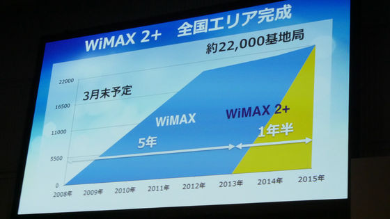 WiMAX2+はエリアをグングン拡大中で、たった1年半でWiMAXが5年かけて拡大したエリアと同等まで大きくなります。
