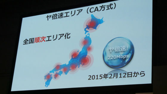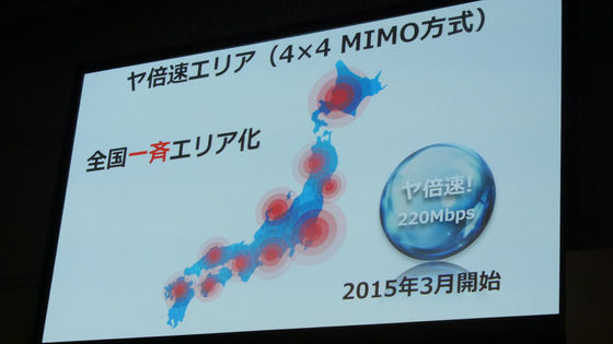 110Mbps対応エリアの周波数帯域が拡大し、220Mbpsの超高速通信が可能になります。周波数帯域の拡張は2015年2月12日より栃木県真岡市周辺からスタート予定。